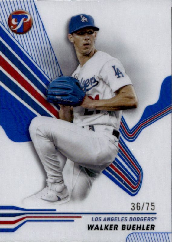 The Walker Buehler 2024 Topps Pristine #107 Blue Refractor /75 card is 1 of 18 Walker Buehler's card variations in the 2024 Topps Pristine set being tracked by Sports Card Investor, including Base, Pristine Refractor, Refractor, Green Refractor /150, and Pristine Purple Refractor /99.