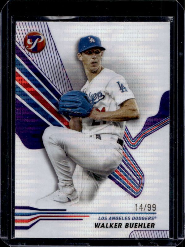 The Walker Buehler 2024 Topps Pristine #107 Pristine Purple Refractor /99 card is 1 of 18 Walker Buehler's card variations in the 2024 Topps Pristine set being tracked by Sports Card Investor, including Base, Pristine Refractor, Refractor, Green Refractor /150, and Purple Refractor /99.