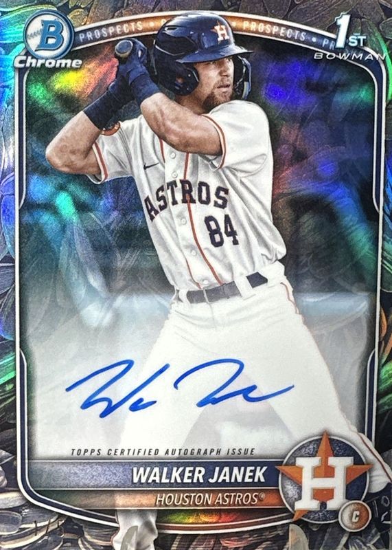 This card is 1 of 88 Walker Janek's card variations in the 2025 Bowman set being tracked by Sports Card Investor, including Chrome Prospects (1st), Chrome Prospects - Gumball Refractor (1st), Chrome Prospects - Mini Diamond Refractor (1st), Chrome Prospects - Peanuts Refractor (1st), and Chrome Prospects - Pearl Refractor (1st).