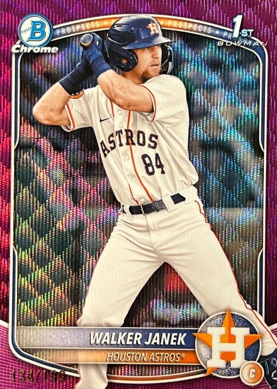 This card is 1 of 88 Walker Janek's card variations in the 2025 Bowman set being tracked by Sports Card Investor, including Chrome Prospects (1st), Chrome Prospects - Gumball Refractor (1st), Chrome Prospects - Mini Diamond Refractor (1st), Chrome Prospects - Peanuts Refractor (1st), and Chrome Prospects - Pearl Refractor (1st).