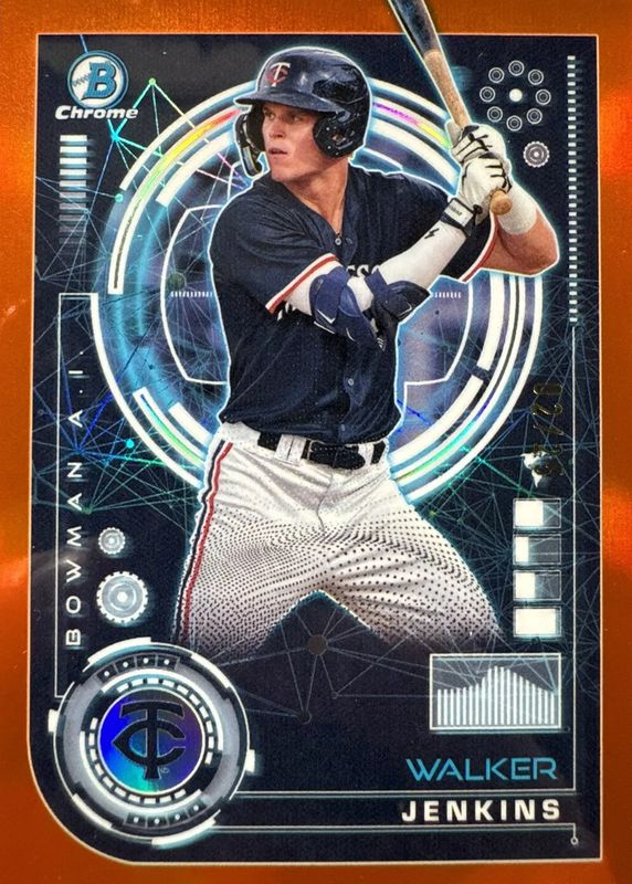 The Walker Jenkins 2024 Bowman #BAI-10 Bowman AI - Orange Refractor /25 card in Raw condition has not changed in price in the last 30 days and was last sold for $52.00 .