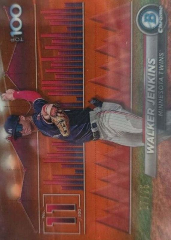 The Walker Jenkins 2024 Bowman #BTP-11 Bowman Scouts' Top 100 - Orange Refractor /25 card in Raw condition has not changed in price in the last 30 days and was last sold for $38.00 .
