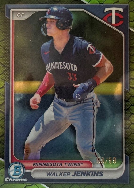 Walker Jenkins 2024 Bowman Chrome 16/99 Prospects Reptilian Green Twins #BCP-204