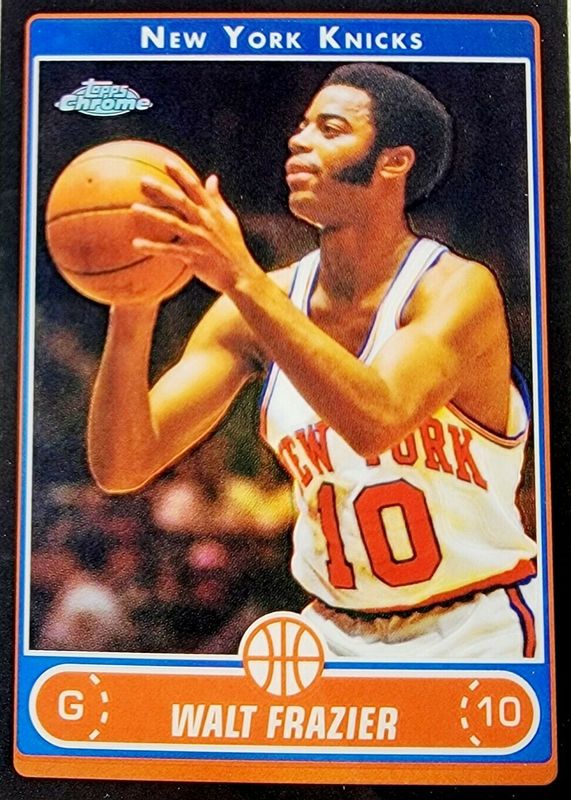 This card is 1 of 10 Walt Frazier's card variations in the 2006 Topps Chrome set being tracked by Sports Card Investor, including Base, Framed Press Plates Black /1, Framed Press Plates Cyan /1, Framed Press Plates Magenta /1, and Framed Press Plates Yellow /1.