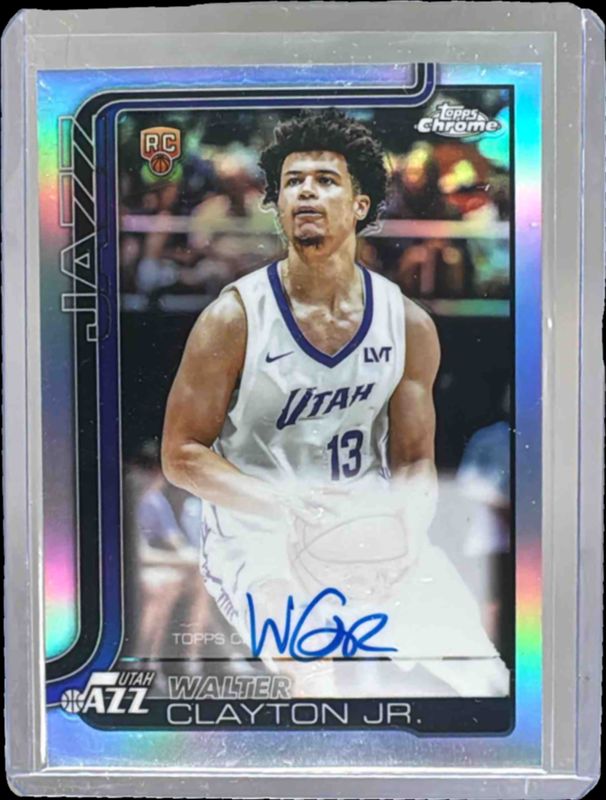 The Walter Clayton Jr. 2025 Topps Chrome #TCAR-WCJ Chrome Rookie Autographs - Refractor card in Raw condition has moved up $5.12 (+7.3%) in the last 30 days and was last sold for $75.00 .