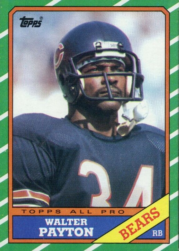 The Walter Payton 1986 Topps #11 Base card in Raw condition has moved up $2.25 (+39.1%) in the last 30 days and was last sold for $8.00 .