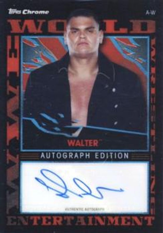 The Walter 2021 Topps Chrome Slam Attax WWE #A-W Autographs /50 card is 1 of 4 Walter's card variations in the 2021 Topps Chrome Slam Attax WWE set being tracked by Sports Card Investor, including Autographs Orange Refractor /25, Autographs Red Wave Refractor /5, and Autographs Superfractor /1.