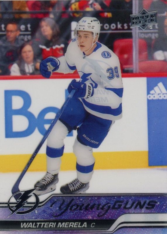 The Waltteri Merela 2023 Upper Deck #454 Young Guns - Clear Cut Rookie card in Raw condition has not changed in price in the last 30 days and was last sold for $14.50 .