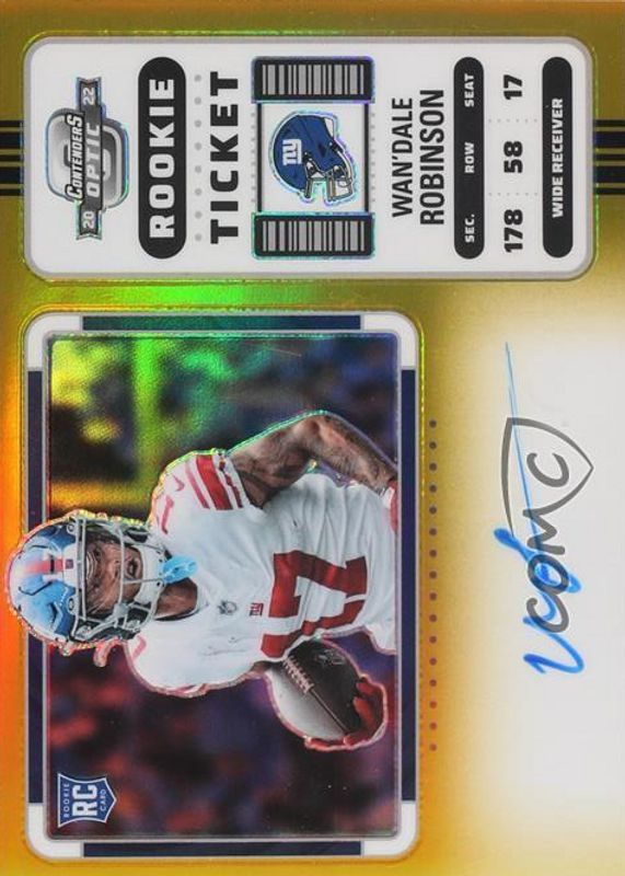 Wan'Dale Robinson 2022 Contenders Optic #141 Rookie Ticket Auto Variation - Gold /10 RAW Price Guide