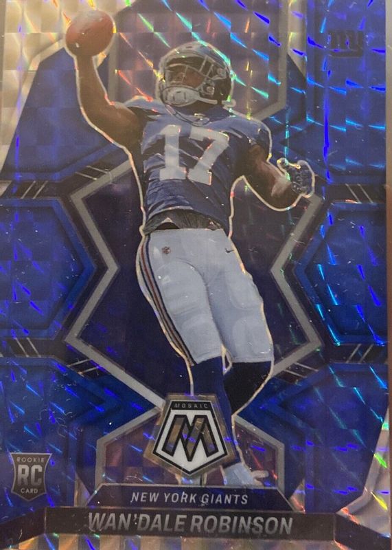 The Wan'Dale Robinson 2022 Mosaic #330 Blue /99 Rookie card in Raw condition has not changed in price in the last 30 days and was last sold for $2.13 .
