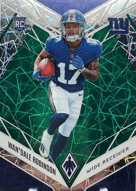 The Wan'Dale Robinson 2022 Phoenix #120 Green Lazer /25 Rookie card in Raw condition has not changed in price in the last 30 days and was last sold for $1.99 .