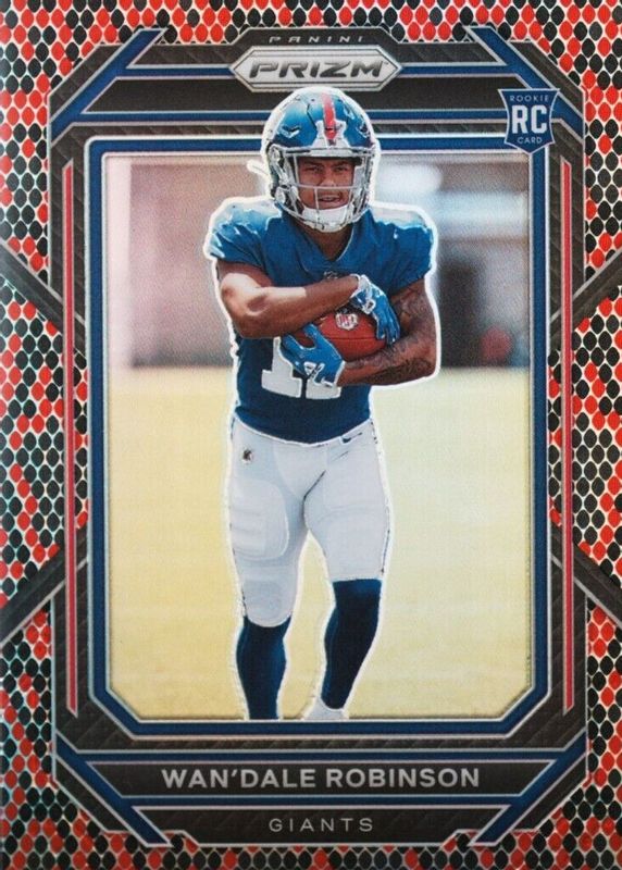 The Wan'Dale Robinson 2022 Prizm #315 Snakeskin /(SSP) Rookie card in Raw condition has not changed in price in the last 30 days and was last sold for $25.00 .