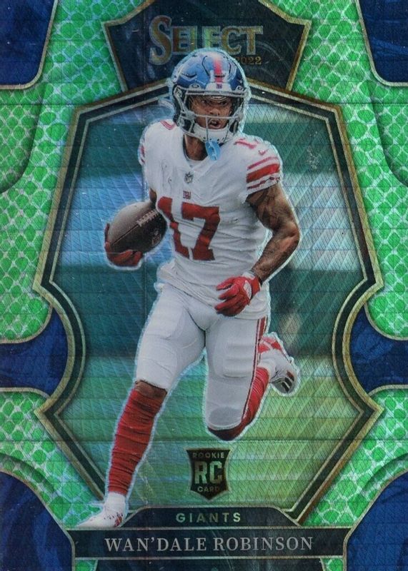 This card is 1 of 40 Wan'Dale Robinson's card variations in the 2022 Select set being tracked by Sports Card Investor, including Premier Level, Premier Level Black & Green Die-Cut, Premier Level Black & Red Die-Cut, Premier Level Disco, and Premier Level Green & Yellow Die-Cut.