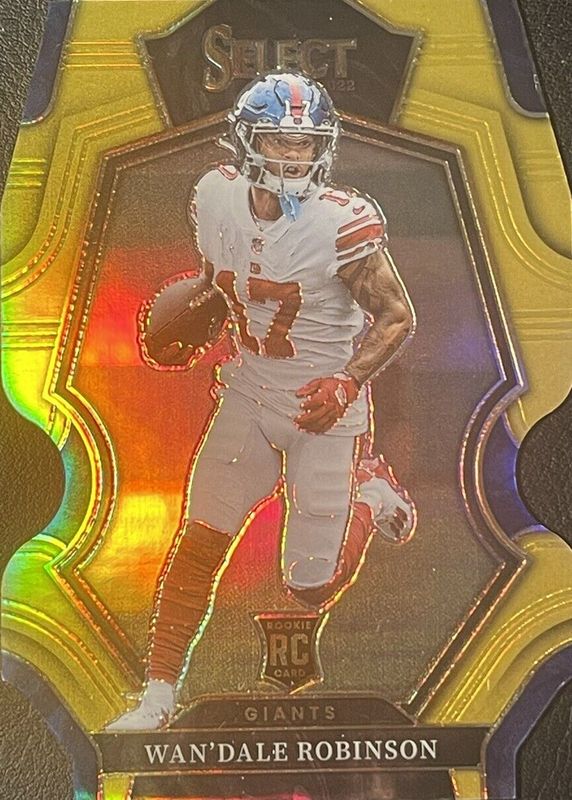 The Wan'Dale Robinson 2022 Select #174 Premier Level Gold Die-Cut /10 Rookie card in Raw condition has not changed in price in the last 30 days and was last sold for $45.00 .