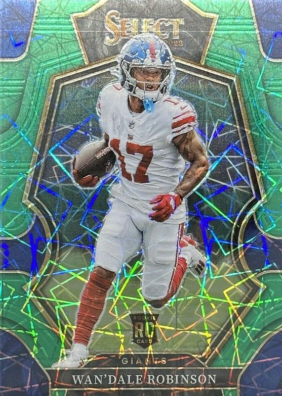The Wan'Dale Robinson 2022 Select #174 Premier Level Green /5 Rookie card in Raw condition has not changed in price in the last 30 days and was last sold for $42.00 .