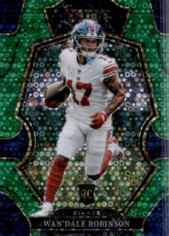 This card is 1 of 40 Wan'Dale Robinson's card variations in the 2022 Select set being tracked by Sports Card Investor, including Premier Level, Premier Level Black & Green Die-Cut, Premier Level Black & Red Die-Cut, Premier Level Disco, and Premier Level Green & Yellow Die-Cut.