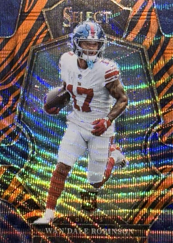 This card is 1 of 40 Wan'Dale Robinson's card variations in the 2022 Select set being tracked by Sports Card Investor, including Premier Level, Premier Level Black & Green Die-Cut, Premier Level Black & Red Die-Cut, Premier Level Disco, and Premier Level Green & Yellow Die-Cut.