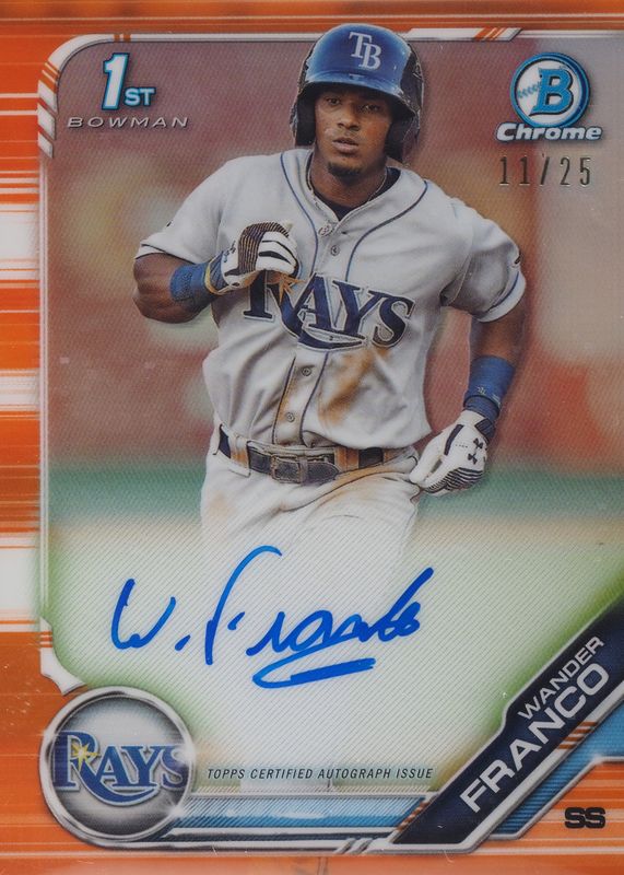 Best Prices Available For Sale of Wander Franco 2019 Bowman #CPA-WF Chrome Prospect Auto - Orange Refractor /25 (1st)