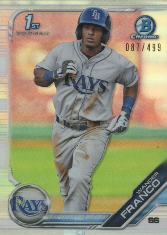The Wander Franco 2019 Bowman #BCP-100 Chrome Prospects - Refractor /499 (1st) card in Raw condition has not changed in price in the last 30 days and was last sold for $14.99 .