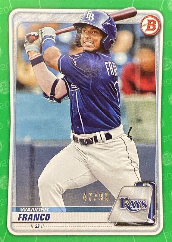 The Wander Franco 2020 Bowman #BP-1 Paper Prospects - Green /99 card in Raw condition has not changed in price in the last 30 days and was last sold for $6.00 .