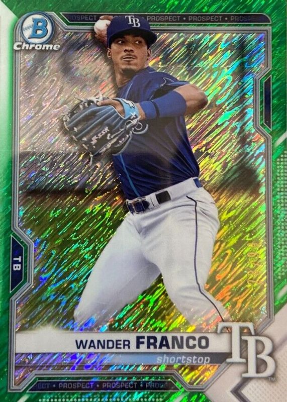 Best Prices Available For Sale of Wander Franco 2021 Bowman Chrome #BCP-240 Prospects - Green Shimmer Refractor /99