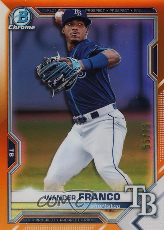 The Wander Franco 2021 Bowman Chrome #BCP-240 Prospects - Yellow Refractor /75 card in Raw condition has not changed in price in the last 30 days and was last sold for $51.99 .