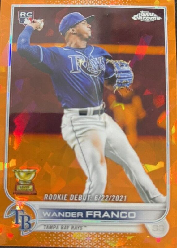 The Wander Franco 2022 Topps Chrome Update Sapphire Edition #US42 Rookie Debut - Orange /25 card in Raw condition has not changed in price in the last 30 days and was last sold for $221.50 .