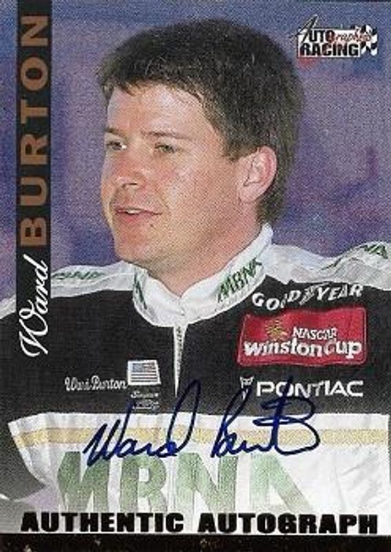 The Ward Burton 1996 Score Board Autographed Autographs card is 1 of 4 Ward Burton's card variations in the 1996 Score Board Autographed set being tracked by Sports Card Investor, including Base, High Performance, and Autographs - Gold /250.