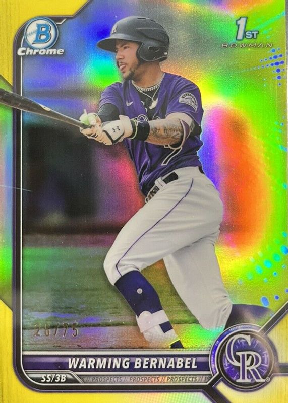 2022 Bowman Chrome #BCP-46 Warming Bernabel #/75 1st Yellow Refractor RC Rockies