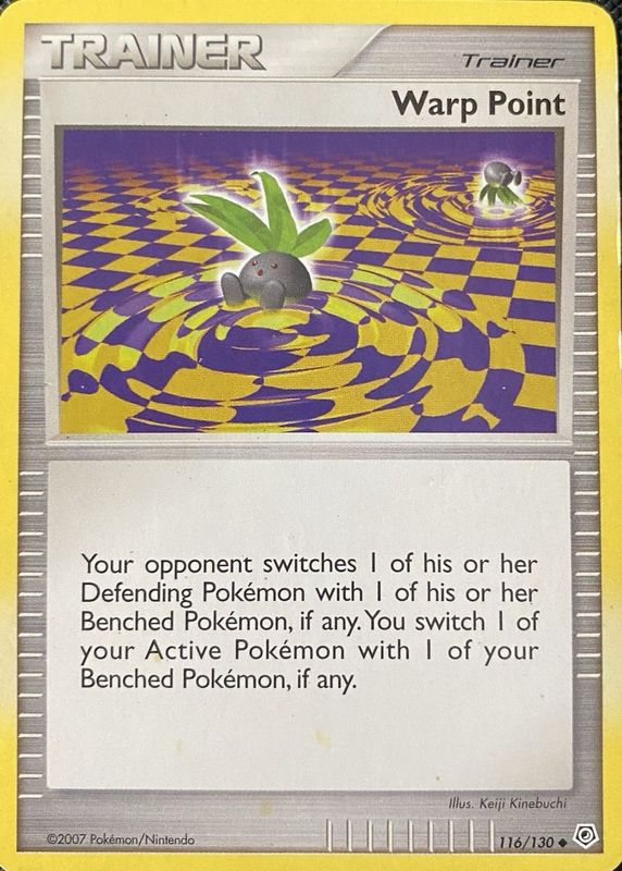 The Warp Point 2007 Diamond & Pearl #116/130 Base card in Raw TCG (Near Mint) condition has moved down -$0.32 (-16.2%) in the last 30 days and was last sold for $1.65 .