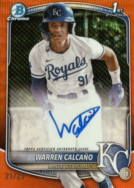 2025 Bowman Chrome Warren Calcano TRUE Orange Auto /25 1st Bowman KC Royals