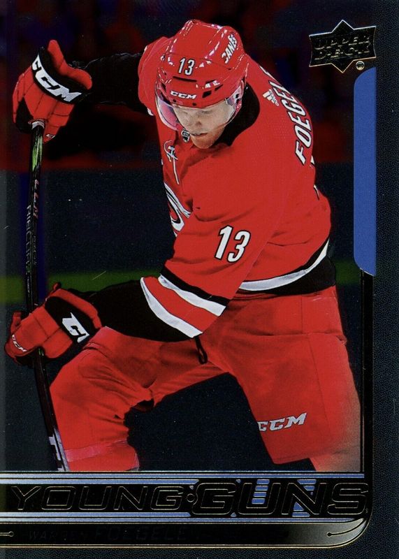 This card is 1 of 7 Warren Foegele's card variations in the 2018 Upper Deck set being tracked by Sports Card Investor, including Young Guns Base, Young Guns - Clear Cut, Young Guns - Jumbo, Young Guns - Speckled Rainbow Foil, and Young Guns - UD Exclusives /100.