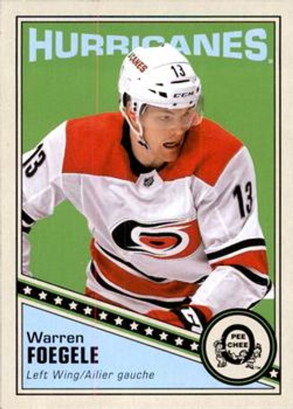 The Warren Foegele 2019 O-Pee-Chee #171 Retro card is 1 of 8 Warren Foegele's card variations in the 2019 O-Pee-Chee set being tracked by Sports Card Investor, including Base, Blue Border, Gold Border, Red Border, and Red Border Blank Back.