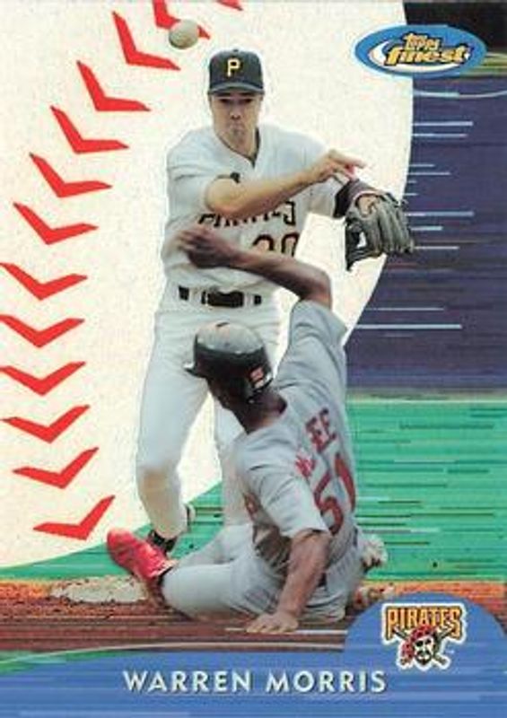 The Warren Morris 2000 Topps Finest #151 Refractor /1000 card is 1 of 3 Warren Morris' card variations in the 2000 Topps Finest set being tracked by Sports Card Investor, including Base, and Gold Refractor /100.