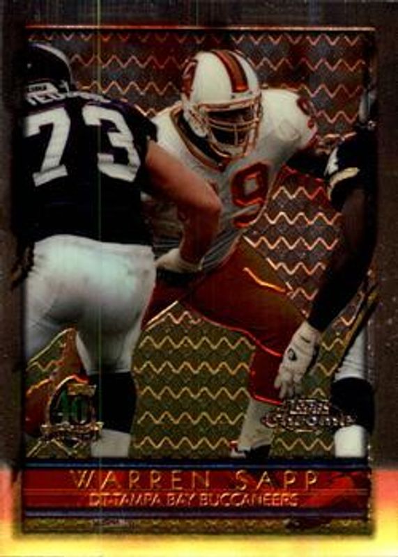 The Warren Sapp 1996 Topps Chrome #23 Base card is 1 of 2 Warren Sapp's card variations in the 1996 Topps Chrome set being tracked by Sports Card Investor, including Refractor.