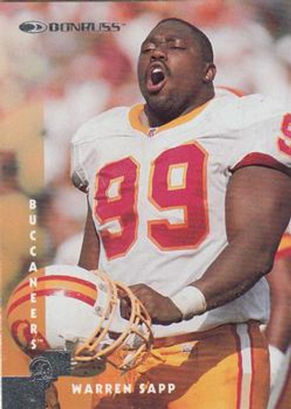 The Warren Sapp 1997 Donruss #68 Base card is 1 of 3 Warren Sapp's card variations in the 1997 Donruss set being tracked by Sports Card Investor, including Press Proof Gold Die-Cut, and Press Proof Silver.