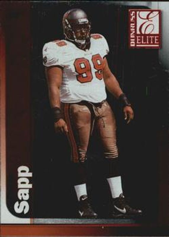 The Warren Sapp 1999 Donruss Elite #099 Base card is 1 of 3 Warren Sapp's card variations in the 1999 Donruss Elite set being tracked by Sports Card Investor, including Aspirations /72, and Status /28.