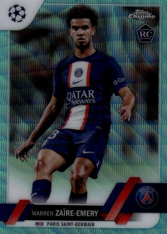 Warren Zaire-Emery 2022 Topps Chrome UEFA Club Competitions #135 Aqua Wave Refractor /199 Rookie RAW Price Guide