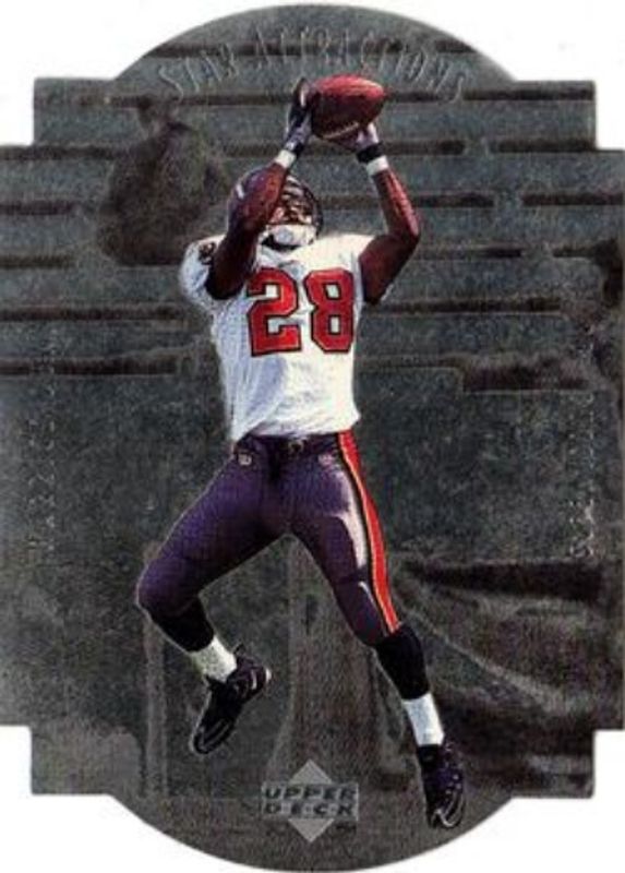 The Warrick Dunn 1997 Upper Deck #SA8 Star Attractions Rookie card is 1 of 3 Warrick Dunn's card variations in the 1997 Upper Deck set being tracked by Sports Card Investor, including Base, and Star Attractions Gold.