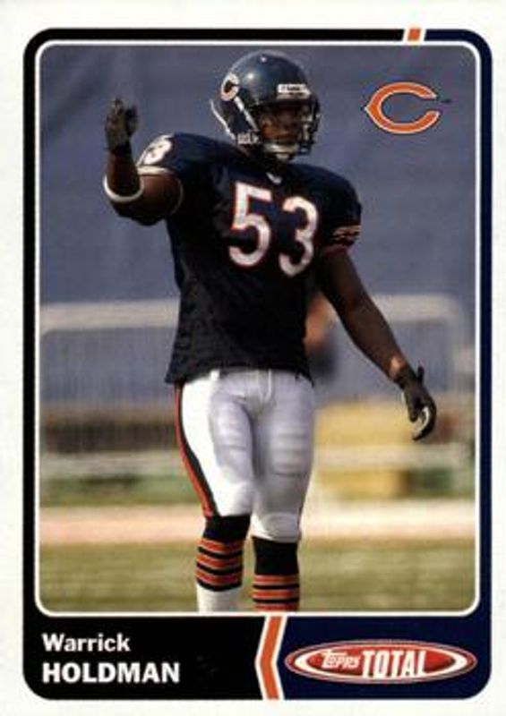 The Warrick Holdman 2003 Topps Total #293 Base card is 1 of 2 Warrick Holdman's card variations in the 2003 Topps Total set being tracked by Sports Card Investor, including Silver.
