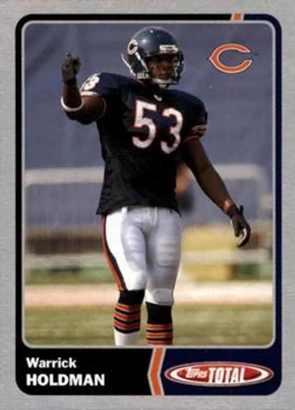 The Warrick Holdman 2003 Topps Total #293 Silver card is 1 of 2 Warrick Holdman's card variations in the 2003 Topps Total set being tracked by Sports Card Investor, including Base.