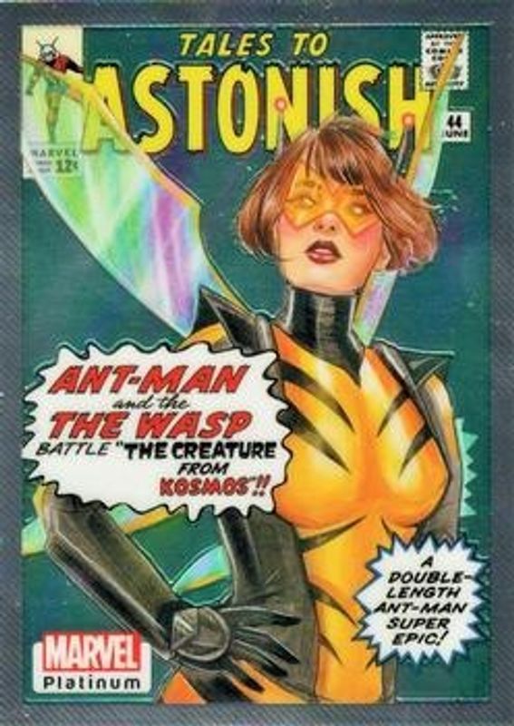The Wasp 2023 Upper Deck Marvel Platinum #WI24 Cover Variant card is 1 of 45 Wasp's card variations in the 2023 Upper Deck Marvel Platinum set being tracked by Sports Card Investor, including Base, Black Rainbow, Blue Rainbow, Blue Surge, and Purple Rainbow.
