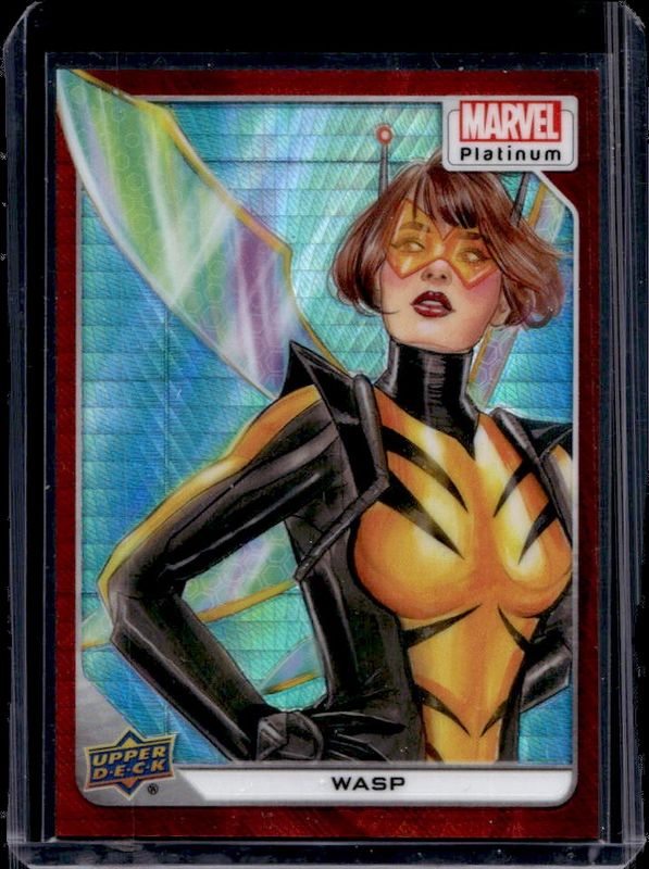 The Wasp 2023 Upper Deck Marvel Platinum #24 Red Prism /199 card is 1 of 45 Wasp's card variations in the 2023 Upper Deck Marvel Platinum set being tracked by Sports Card Investor, including Base, Black Rainbow, Blue Rainbow, Blue Surge, and Purple Rainbow.
