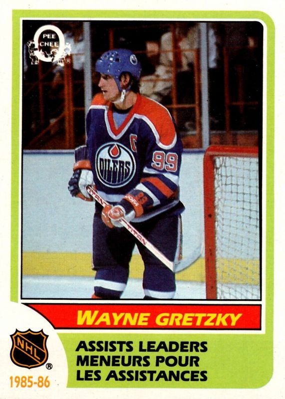 The Wayne Gretzky 1986 O-Pee-Chee #259 Assists Leaders card in Raw condition has moved down -$6.47 (-44.7%) in the last 30 days and was last sold for $8.00 .