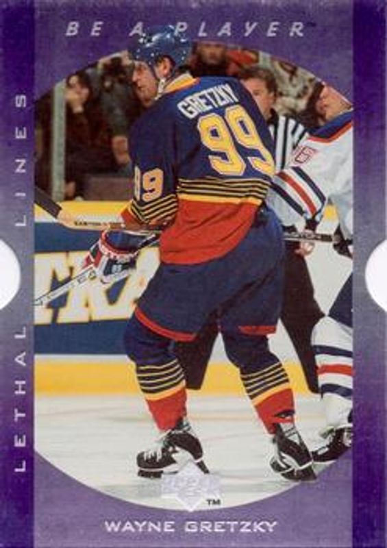 The Wayne Gretzky 1995 Upper Deck Be a Player #LL2 Lethal Lines card is 1 of 15 Wayne Gretzky's card variations in the 1995 Upper Deck Be a Player set being tracked by Sports Card Investor, including #97 Base, #S97 Autographs, #S97 Autographs die-cut, Great Memories, and #GM01 Great Memories.