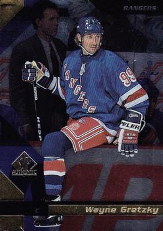 The Wayne Gretzky 1997 SP Authentic #99 Base card is 1 of 18 Wayne Gretzky's card variations in the 1997 SP Authentic set being tracked by Sports Card Investor, including #I26 Icons, #I26 Icons Embossed, #WG Sign of the Times, #SPA1 Wayne Gretzky SP Authentic Collection Redemptions, and #SPA12 Wayne Gretzky SP Authentic Collection Redemptions.