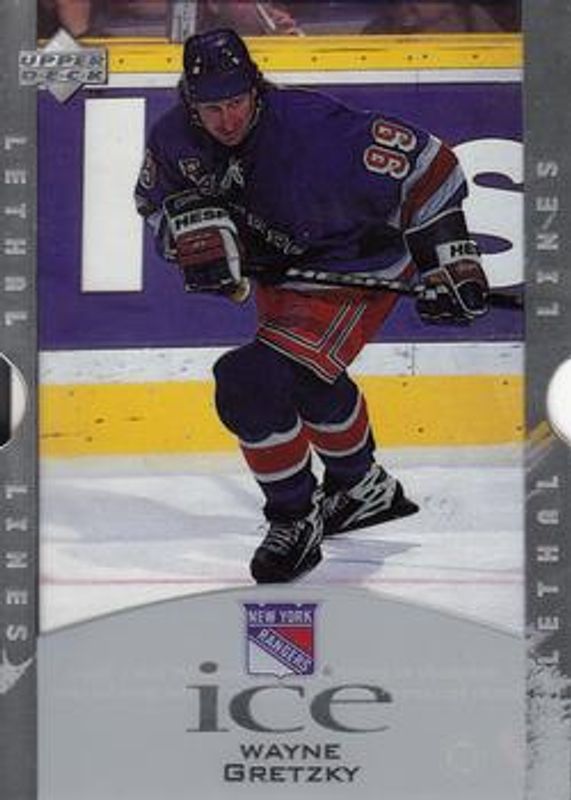 The Wayne Gretzky 1997 Upper Deck Ice #L1-B Lethal Lines card is 1 of 7 Wayne Gretzky's card variations in the 1997 Upper Deck Ice set being tracked by Sports Card Investor, including Base, Parallel, Power Shift, Champions, and Lethal Lines 2.
