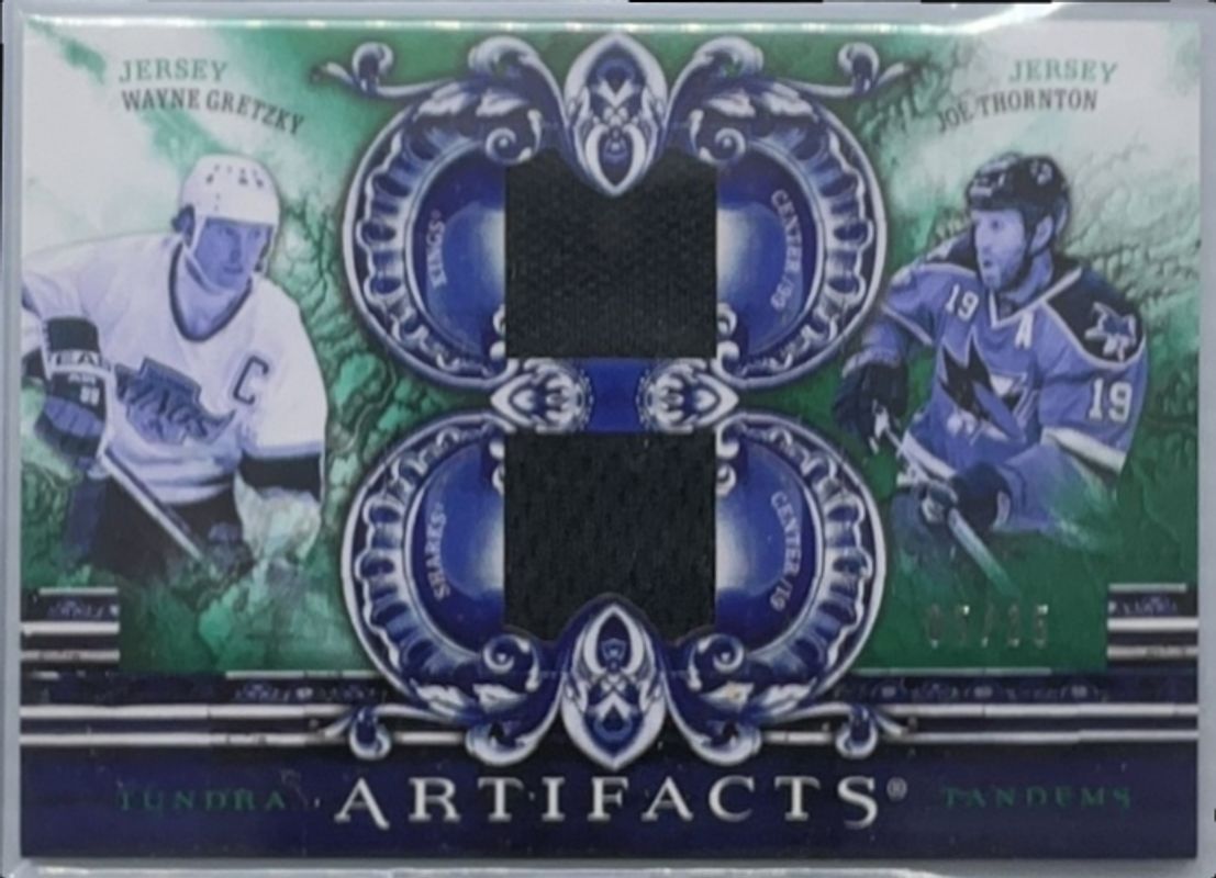 The Wayne Gretzky 2010 Upper Deck Artifacts #TT2-SSMA Tundra Tandems - Emerald /35 card is 1 of 18 Wayne Gretzky's card variations in the 2010 Upper Deck Artifacts set being tracked by Sports Card Investor, including Base /699, Emerald /50, Gold /35, Silver /25, and Rainbow /10.