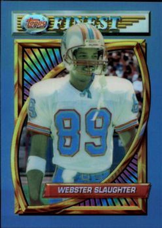 The Webster Slaughter 1994 Topps Finest #98 Base card is 1 of 2 Webster Slaughter's card variations in the 1994 Topps Finest set being tracked by Sports Card Investor, including Refractors.