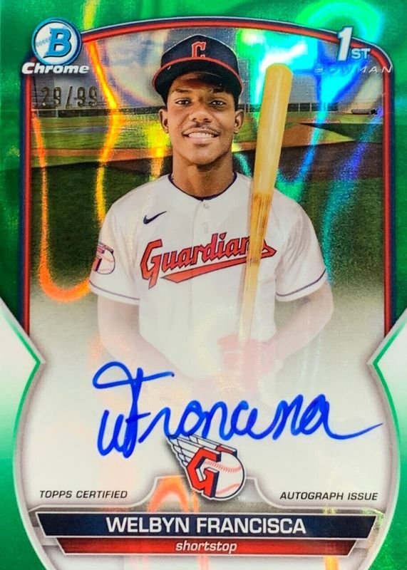 Welbyn Francisca 2023 Bowman Chrome #CPA-WF Prospect Auto - Green Lava Refractor /99 (1st) RAW Price Guide